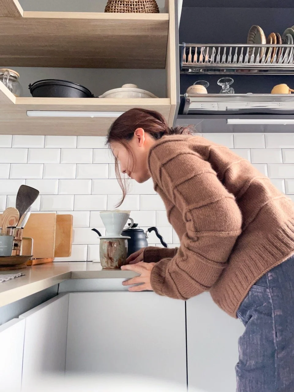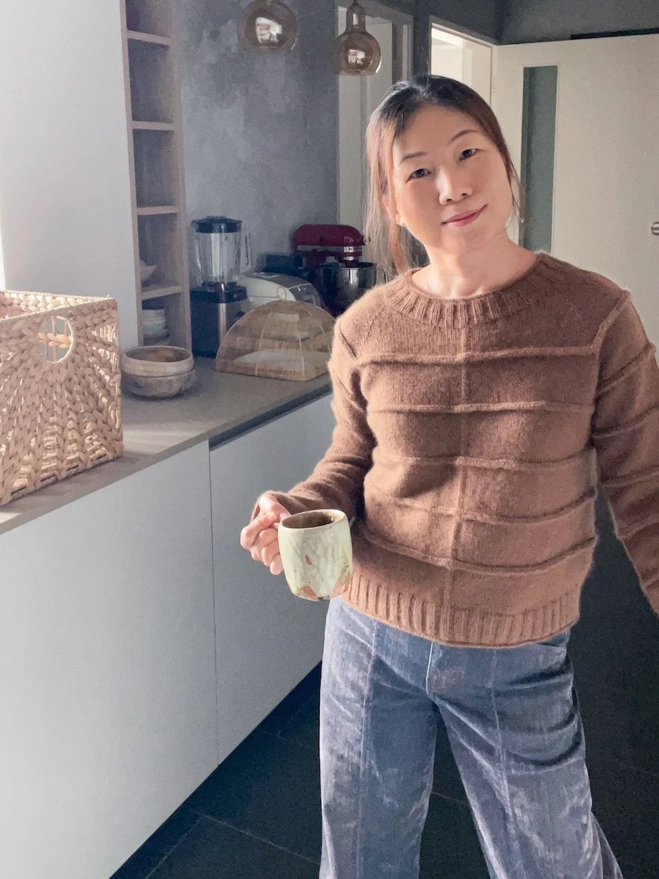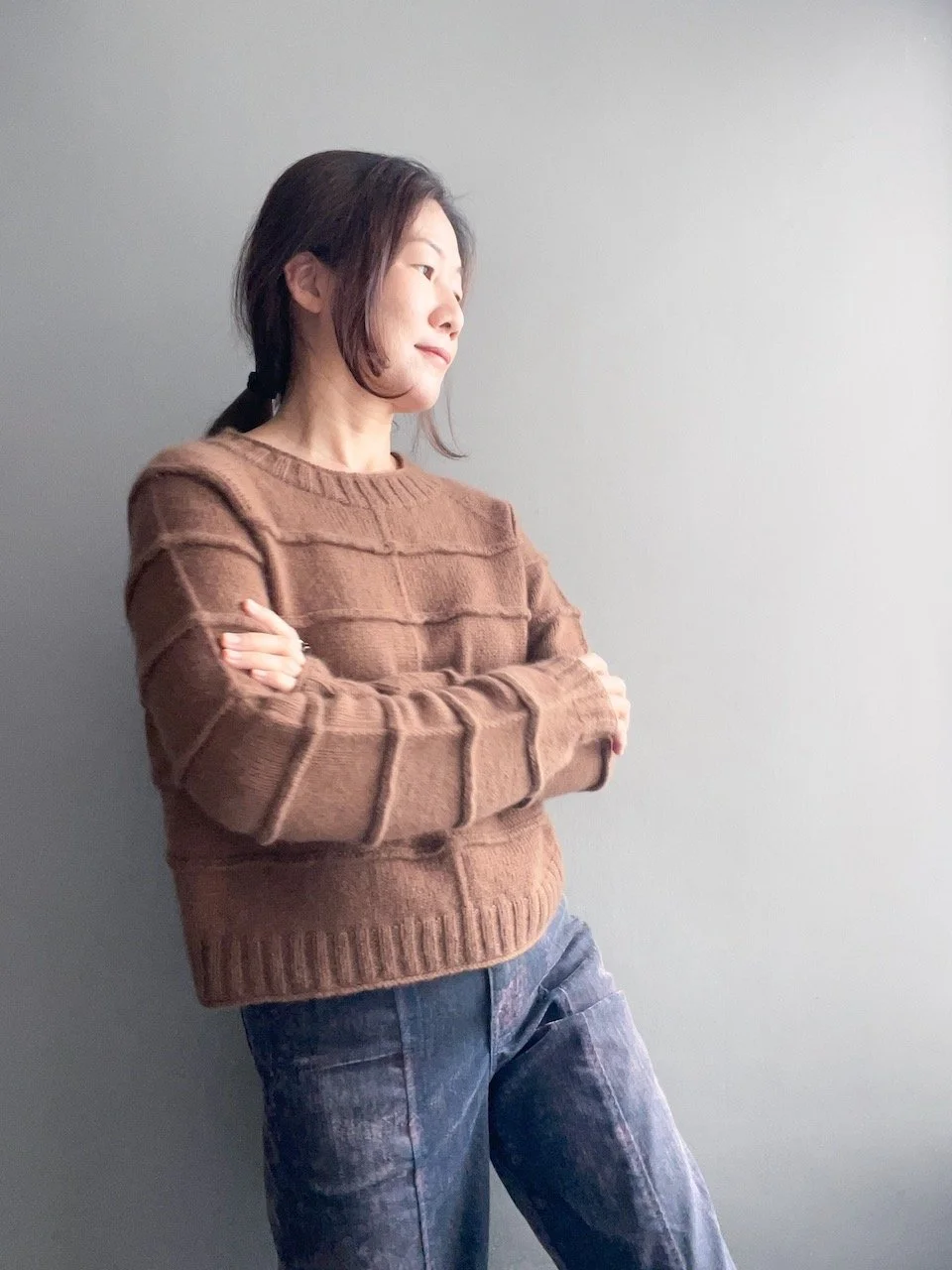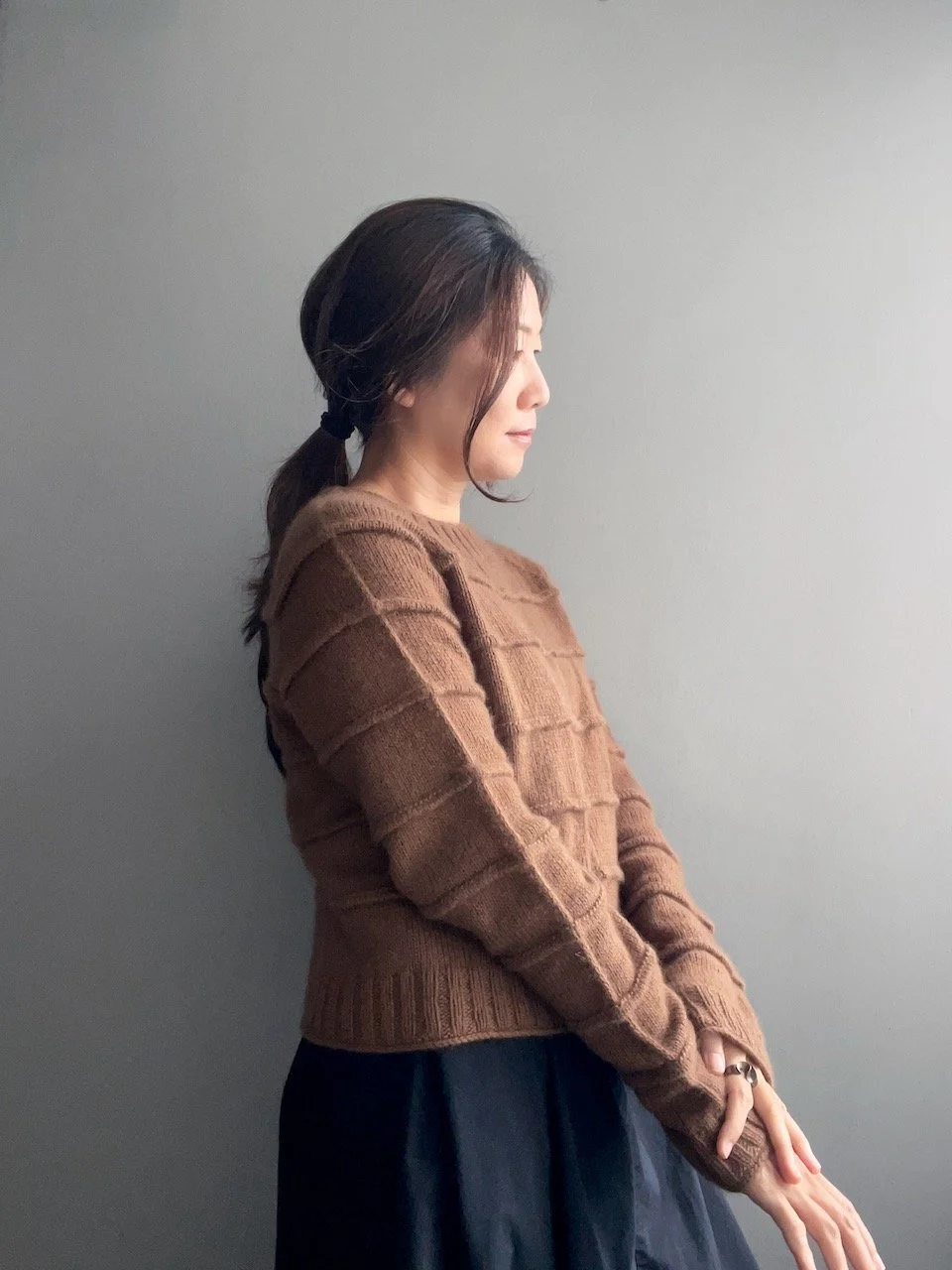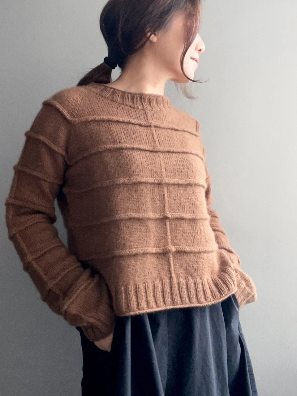 Once the yoke is complete, the body and sleeves are set free to flow smoothly in the round down to the hem and cuffs, where 2x2 ribbing with a subtle line at the edge gives the sweater a fuss-free finish.